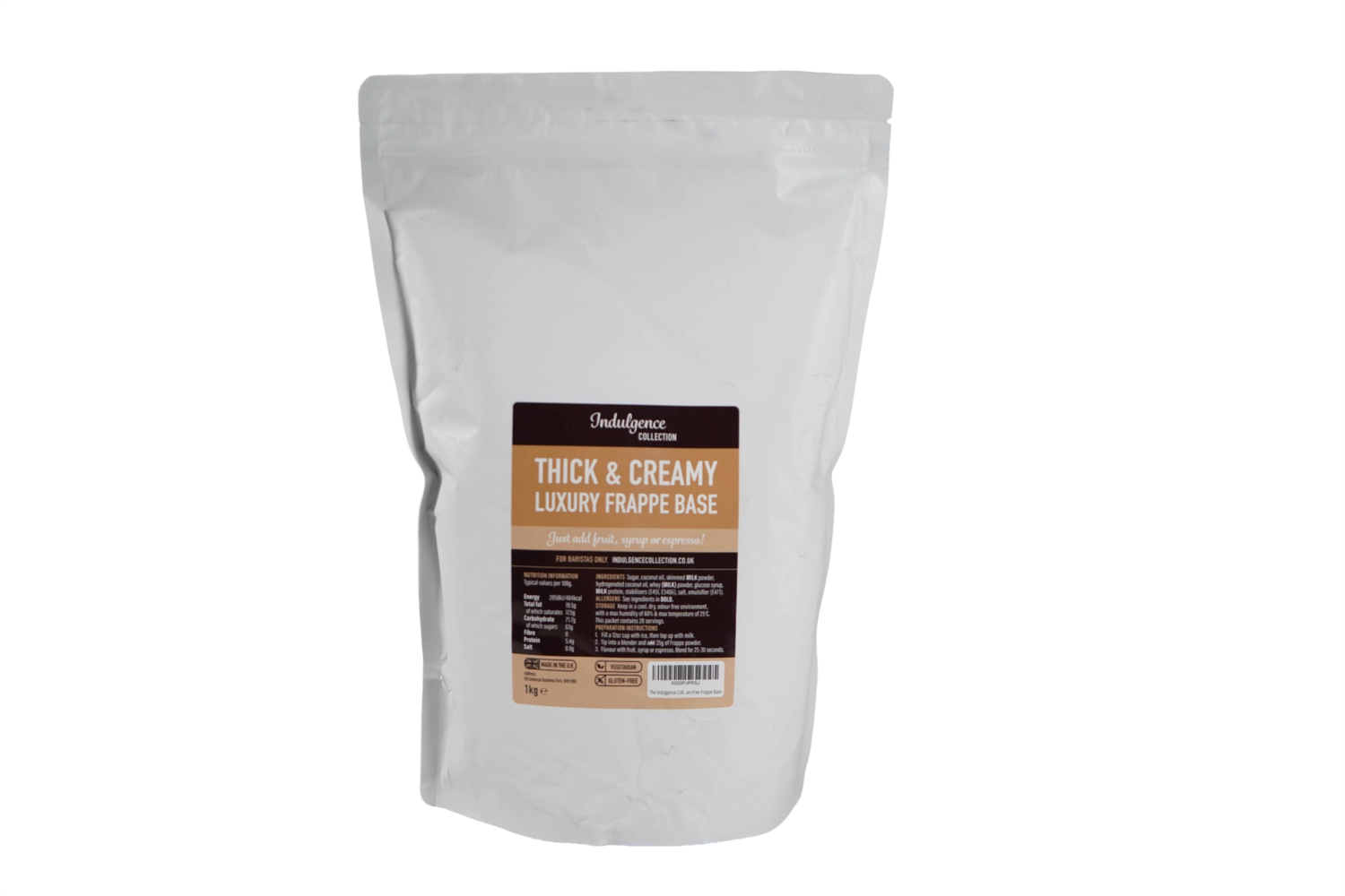 Thick & Creamy Luxury Frappe Base is a versatile unflavoured thickener designed to work as a base for creating any flavoured frappe you wish. Simply add an espresso and/or a shot of flavoured syrup.